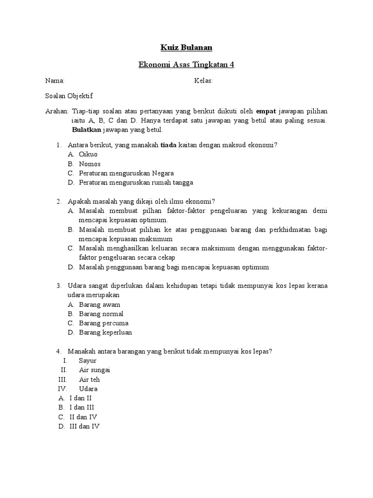 Soalan Kuiz Ekonomi Tingkatan 4. Soalan 1 apakah maksud isi rumah? You can do the exercises online or download the worksheet as pdf.